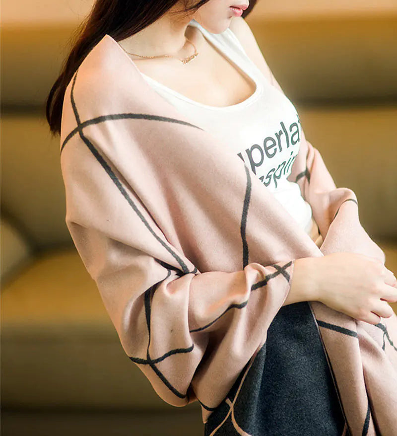 Perfect for chilly days and crisp evenings, this double-sided Korean-style shawl blends functionality with fashion. Its thickened 320g weight and luxuriously soft feel make it your go-to accessory for both casual wear and elevated winter looks.