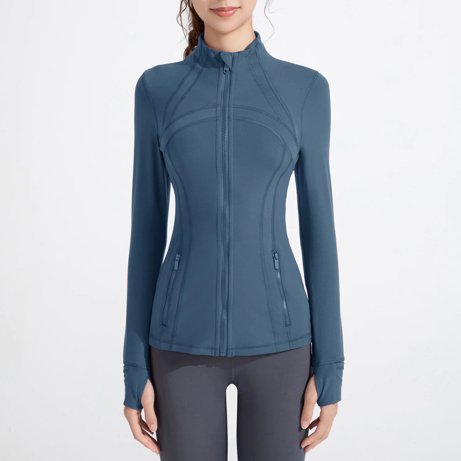 Aura13 Women’s Stand Collar Zip-Up Sports Jacket – Stretch Nylon Activewear for Running & Fitness