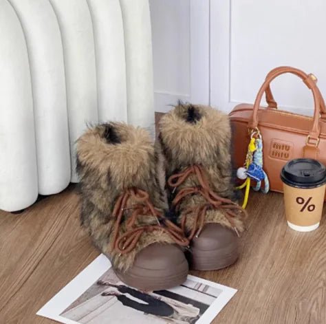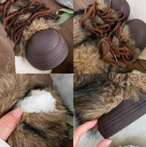 Crafted from high-quality fluff material, these boots offer a soft, warm feel inside and out. The plush cotton lining keeps your feet snug and insulated, while the non-slip rubber sole ensures stability even on icy paths. Designed with a stylish 3–5 cm platform heel, they add just the right amount of height while keeping you balanced and supported.